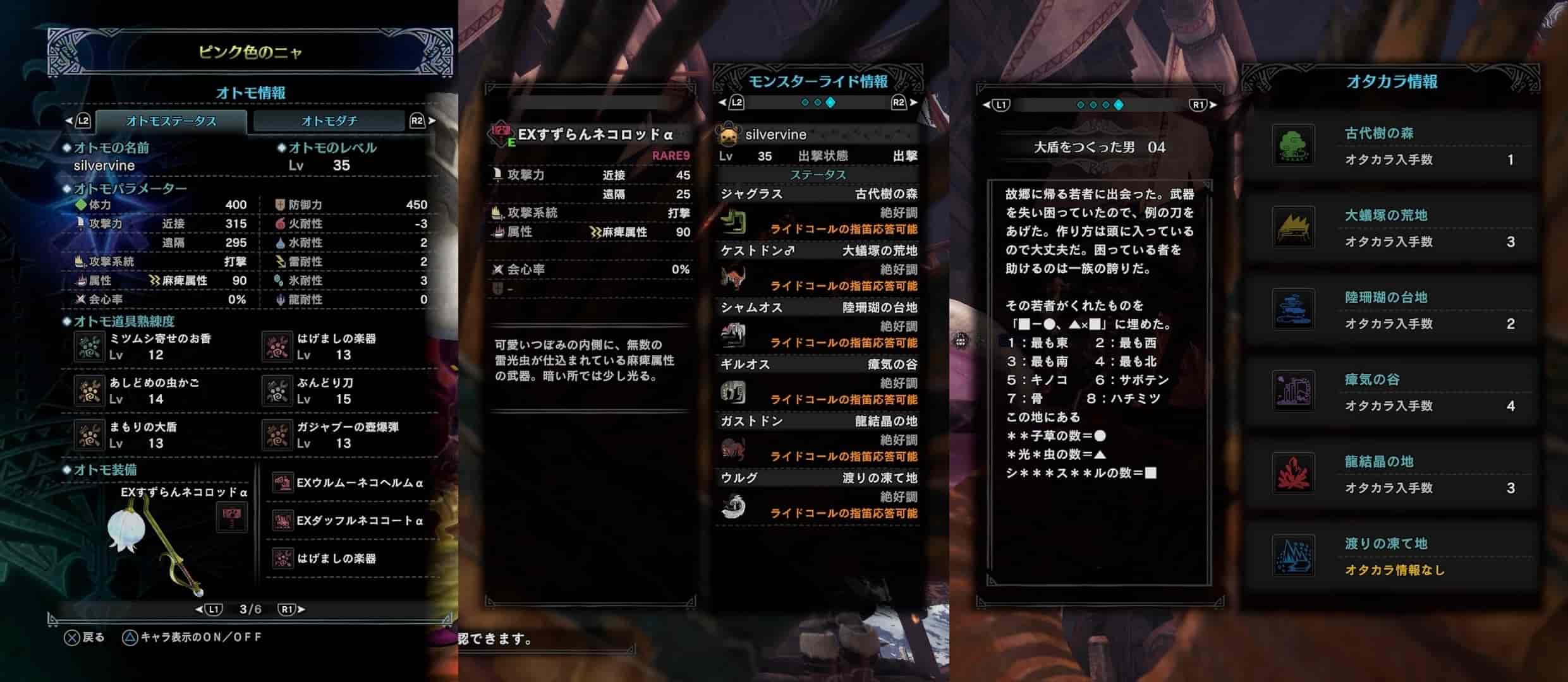 ・未狩猟のモンスター素材はなんとなく使わない(オトモ装備は別