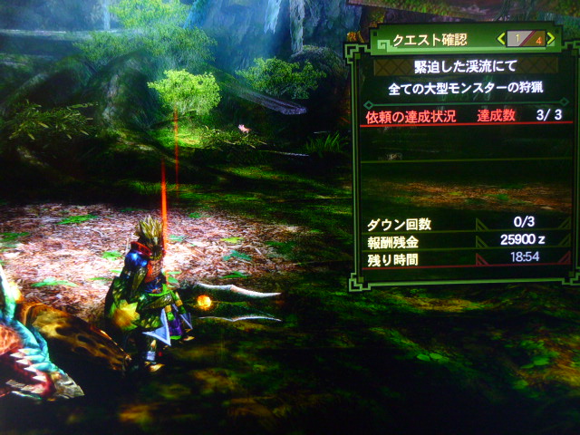 一度挑みに行き28:58と散々で二度目にナルガ、オウガへの対処を考えながら再戦いいタイムな気がする・・!手ぶれがヒドイ画像なのが残念。。